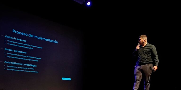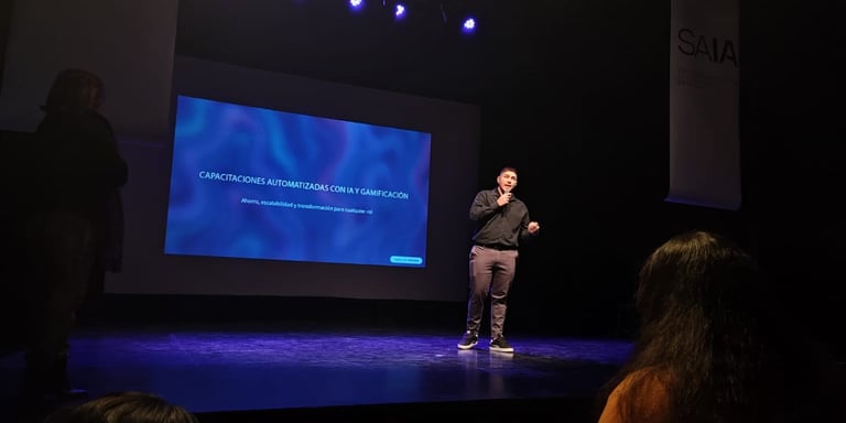 La jornada, cargada de energía e innovación, reunió a un público ávido por descubrir cómo la IA puede aplicarse más allá de lo técnico, directamente al desarrollo humano y profesional. Mansilla abrió la charla con un ejemplo tan cotidiano como potente: “Imaginá un cajero que aprende en días, no semanas, jugando mientras se capacita, y ahorrándole miles a su empresa”.