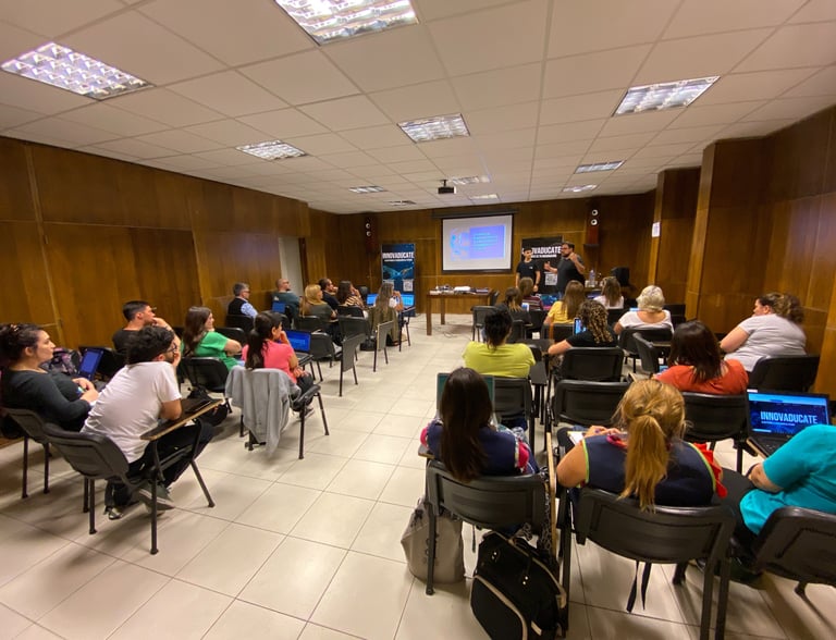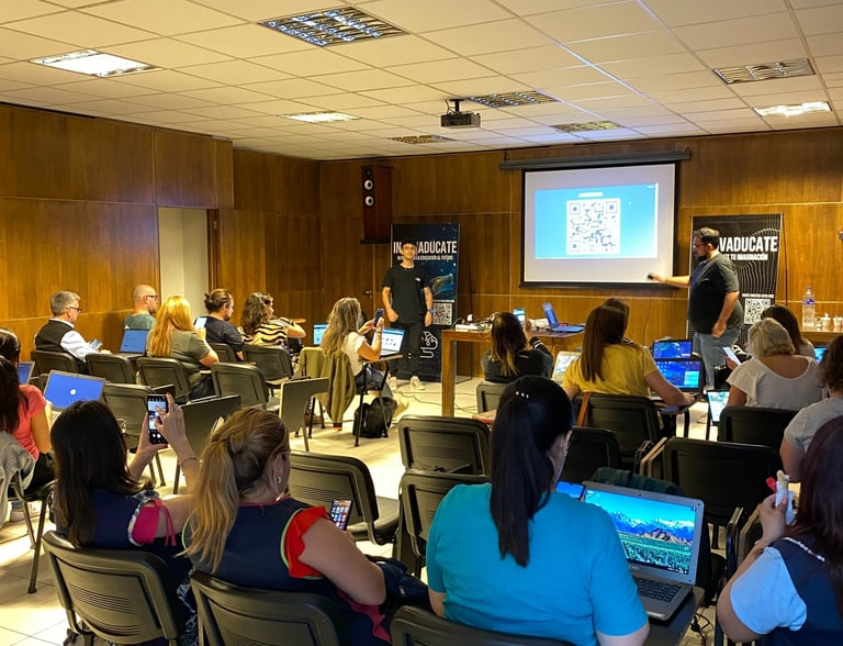 Durante el mes de octubre, INNOVADUCATE llevó al Colegio Padres Vásquez de Maipú una capacitación que prometía transformar la manera en que se concibe la educación en la institución. Todo comenzó gracias a la directora Verónica Guerra, quien, tras participar por iniciativa propia en una capacitación de INNOVADUCATE en el espacio ECoS de la ciudad de Mendoza, nos contactó e insistió en llevar nuestro programa formativo a su colegio. Inspirada por la experiencia y con una visión de vanguardia, Verónica impulsó este proyecto con el compromiso de innovar en el ámbito educativo.
